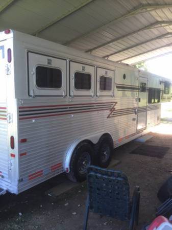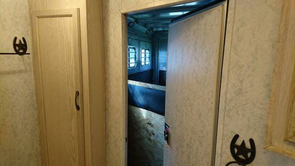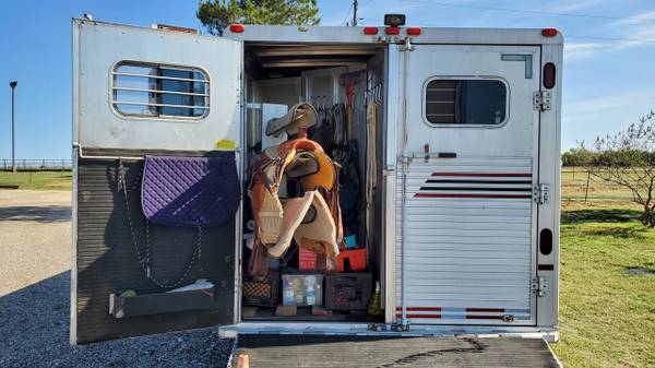 3 horse slant loading. Foldable tack room with swing-out saddle rack.
