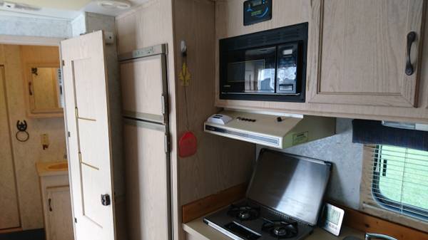 Has huge fridge & freezer (electric or gas). Water heater (electric or gas). 2 burner stove.