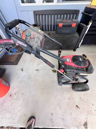Troy bilt power washer. Runs good, no issues. Comes with everything needed to start using immediately. All nozzles, gun handle and hose (100’) from machine to trigger. Just needs gas and water...