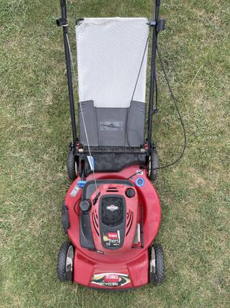 Toro recycler self propelled lawnmower 22 inch cutting deck, with engine briggs and stratton 190cc, 7.00 HP , start at the first pull and cut very well, very clean from inside, fresh oil, BLADE is sharpened, comes with BAG attachment to remove grass out.