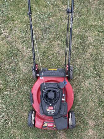 Toro self propelled lawnmower 22 inch cutting deck, with Kohler engine briggs and stratton 149cc , 6.75 HP , start at the first pull and cut very well, very clean from inside, BLADE is sharpened, Does not come with rear bag attachment.