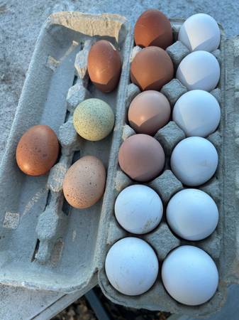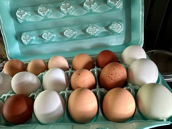 Quality farm fresh chicken eggs collected daily, laid by happy free range hens. $5 per dozen