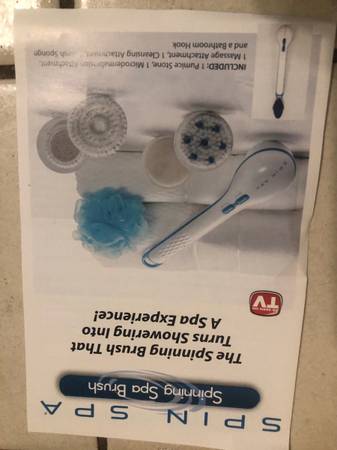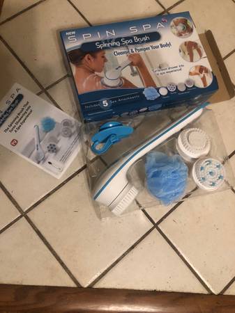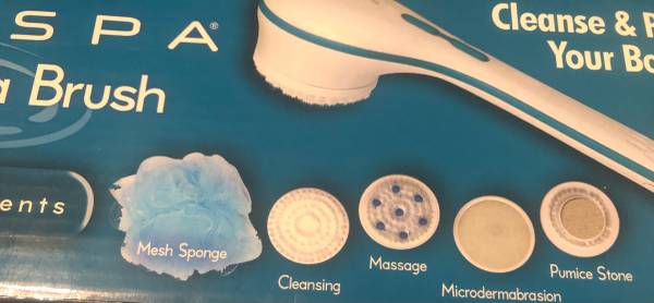 Cleanse and Pamper Your Body. Spinning Spa Brush with 5 Attachments Turns your Shower into a Spa experience. Battery powered and Water resistant.