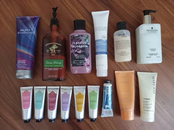 Many are brand new - Avon Moisture Therapy, all the small hand creams, the white Mary Kay SatinHands The rest have been used but still have a lot left I'm downsizing and have to get rid of a lot!...