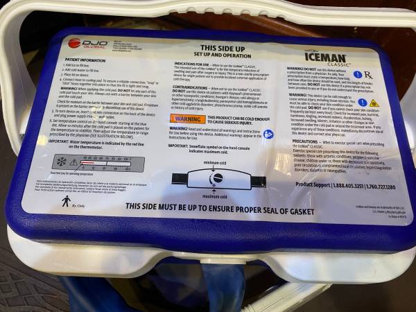 Iceman continuous cold water/ ice therapy unit. Serious inquiry only and include your number for faster response during pickup. Local sale and cash or Venmo. myhealth