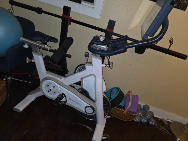 MYX Fitness Bike Connected indoor cycling bike with 21.5" HD touchscreen (swivels for off‑bike workouts). Includes Polar heart rate monitor and access to BODi subscription classes (live &...