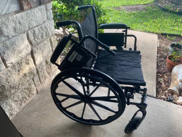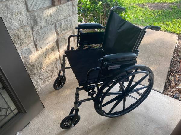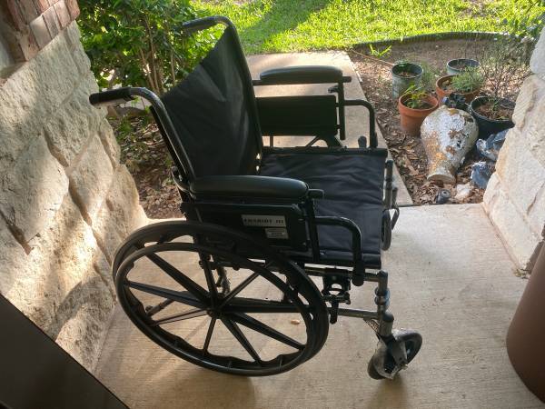 New Proactive Chariot III wheelchair with flip back hand rest and 20" to 21" wide seat. - Removable flip back height adjustable arms allow for easy egress or ingress - Dual axle provides easy...