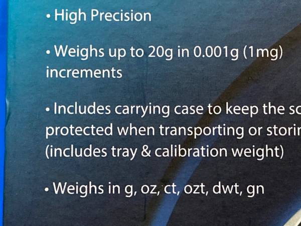 THIS SCALE WEIGHS IN GRAMS, OZ, CT, OZT DWT, GN. THIS IS NEW IN BOX. NOT GOING TO NEED IT. IF INTERESTED, LET ME KNOW. GREAT FOR WEIGHING SILVER AND GOLD, SO YOU KNOW IF YOU ARE GETTING CHEATED WHEN...