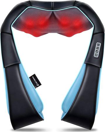 The Cotsoco Shiatsu neck and shoulder massager is an electronic kneading massager shawl with 16 rotating heads that mimic a manual neck massage. It is primarily designed to massage you neck and back but can also be used on your lower back, thighs etc.