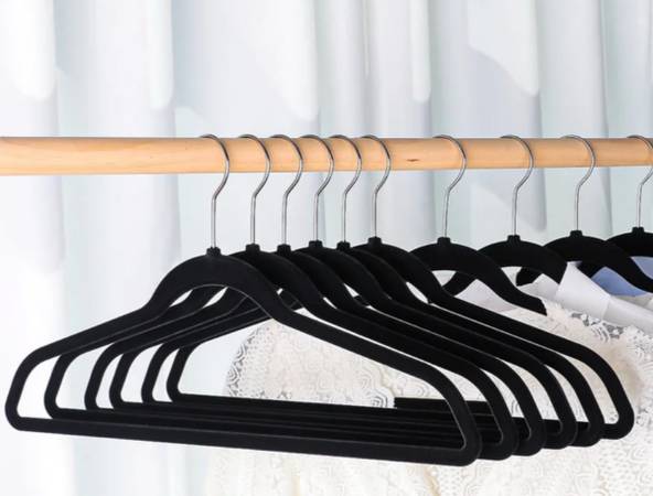 Here are 48 new non-slip hangers to keep your shirts, pants, and jackets neat! Arched shoulders and velvet-like flocking help prevent items from shifting and slipping, and slim profile also helps maximize closet space.