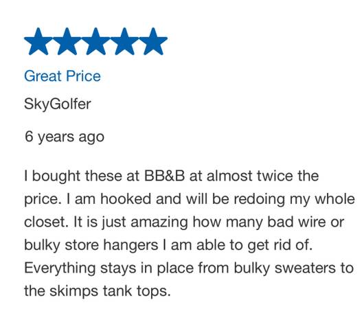 The outer carton is missing, but the hangers themselves are still in the manufacturer’s inner packaging (see pics)…and you won’t care—who needs another box! and you’ll love the price!