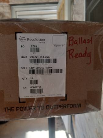 Full box (25) of 4 ft long, ballast ready, 14 Watt/4000K, cool white, frosted light bulbs. They normally sell for right at $9.50 +tax a piece. i am sell Each $3.50 or whole box for $85.00
