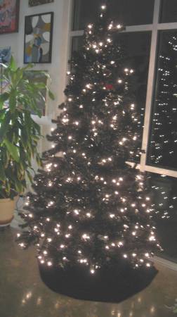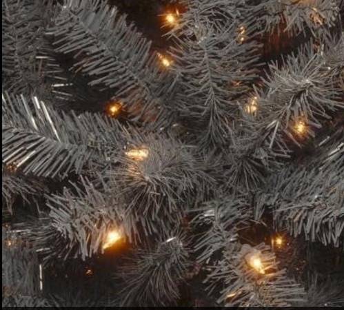 National Tree Company North Valley Black Spruce Pre-Lit Artificial Christmas Tree -- 7.5 feet tall and 54 inches in diameter at the bottom, 550 white lights, 1350 branch tips; hinged branch system allows the branches to swing down for a quick and simple set-up and fold back for easy storage and a sturdy metal base.