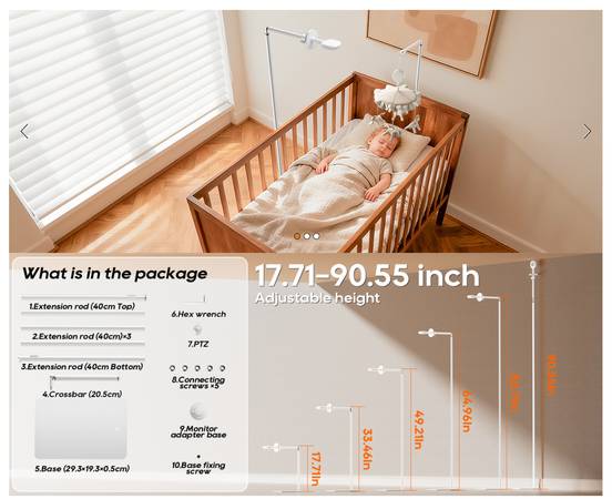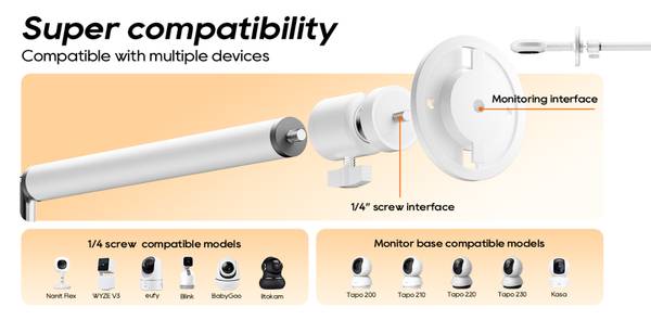 【Universal Compatibility】: SAPESEHE floor stand baby monitor holder is designed to work seamlessly with the Nanit Pro Smart Baby Monitor & Flex Stand/Tapo C200/Tapo C210/HelloBaby HB6550/Kasa EC70/WYZE Pan v3/eufyE220/Blink Mini Pan-Tilt Camera, and any monitor or baby monitor cameras with a 1/4-inch threaded hole (tripod mount). Please confirm your camera model before purchase.