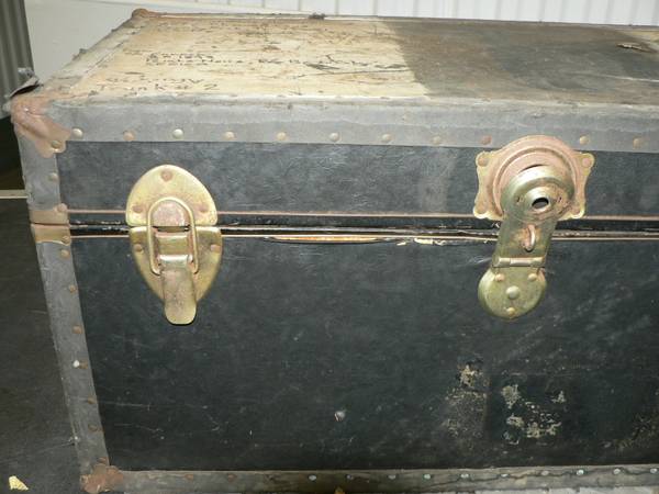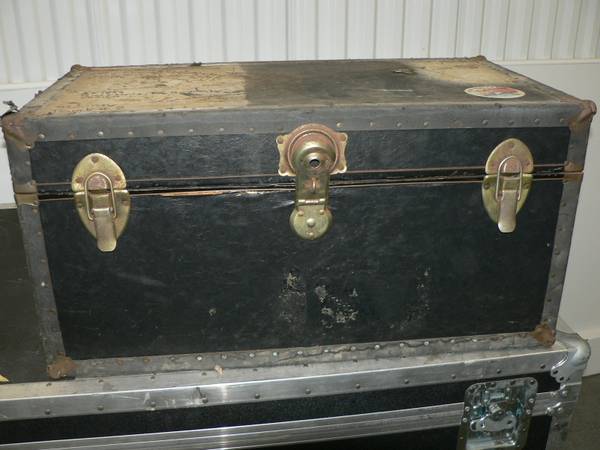 Text or Call five one two five six seven nine zero to seven QJZX ** Two Available*** $25 EACH Black Trunk for Decor 17" x 15.5" x 31" Wafer Board inside 2 Latches Lock , No Key Leather Handles
