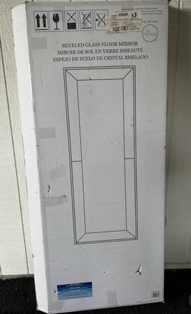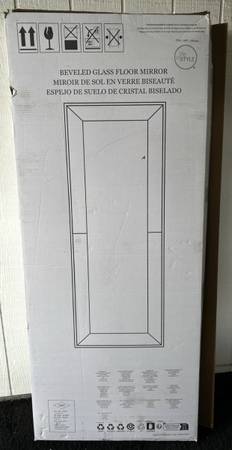 Here we have a beautiful 65” tall Olivia Beveled Glass Full-Length Floor Mirror, in mint condition and still in the original manufacturer’s shipping container!