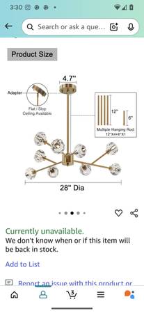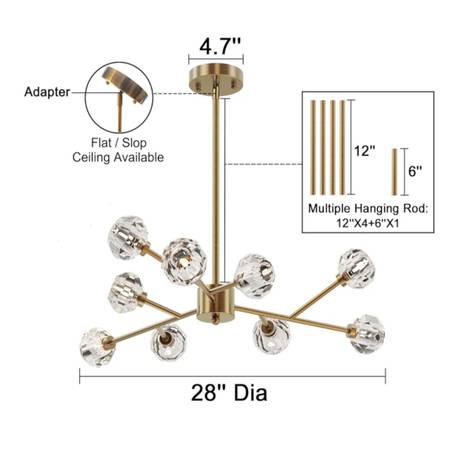 Lamp Body Size:28 inches Dia;Hanging Rod: 1X6 inch and 4X12 inch Rods;