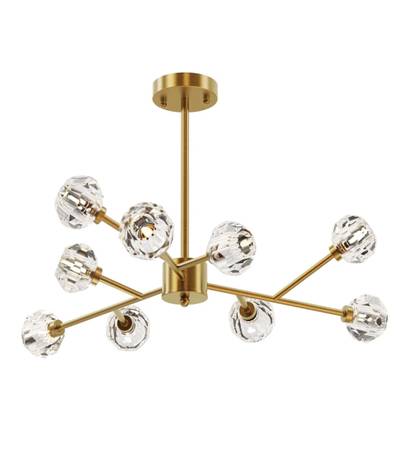Light Retro Brass Sputnik Crystal Ball Shade Branches Chandeliers Hanging Pendant Ceiling Light Polished Gold with 9 Light 360W Large Size 28" Dia
