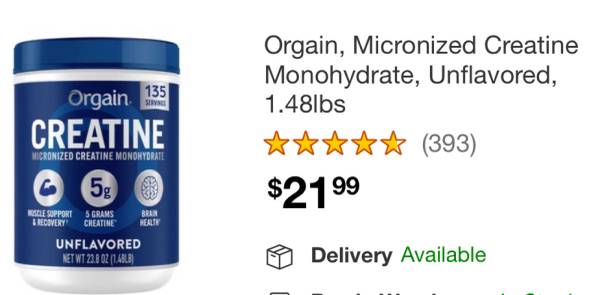 Orgain Creatine delivers micronized creatine monohydrate with no artificial additives or fillers.