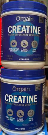 Here we have two open containers of Orgain Micronized Creatine Monohydrate, Unflavored, 1.48lbs.