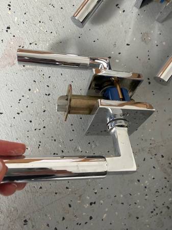 Set of (16) Passage Levers with Square Rose in Polished Chrome. Made of solid brass. GREAT brand. GREAT hardware. Retails news for $200/set.