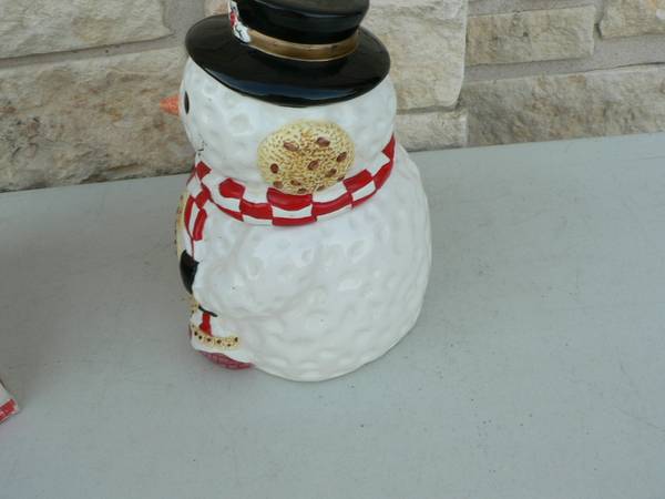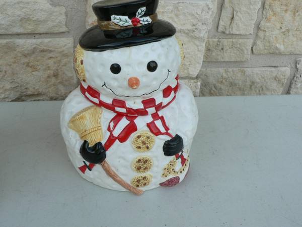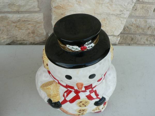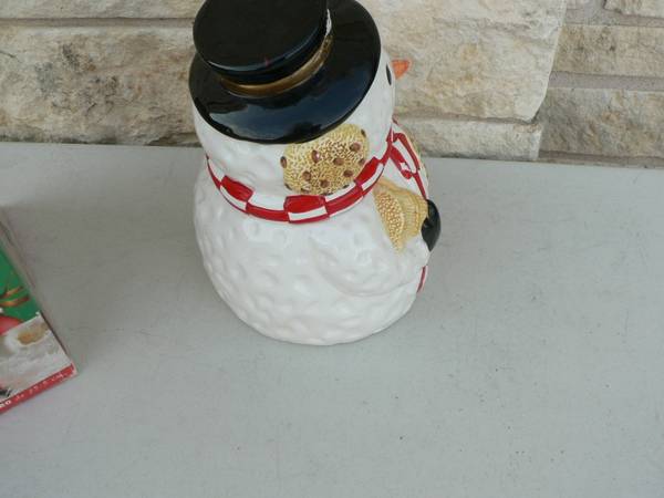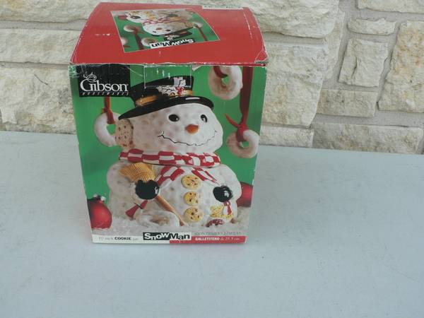 CALL five one two five six seven nine zero two seven QJZX Gibsons 10 in. Snowman Cookie Jar in original box