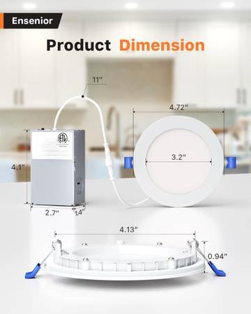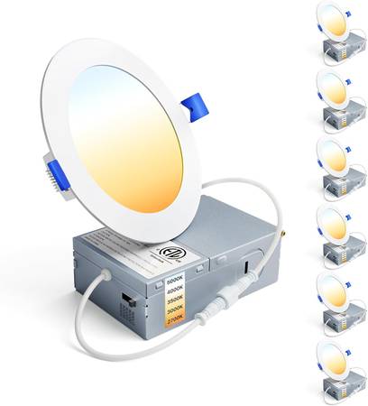 6 Pack 4 Inch LED Recessed Ceiling Light, Dimmable, 2700K-5000K 5CCT (switch on junction box). 750LM 9W 120V, High Brightness - ETL FCC IC