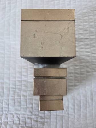 Largest is 8" x 4" x 4" Middle is 6.25" x 3" x 3" Smallest is 5.5" x 2.25" x 2.25" Cash only, porch pick up in Northwest Austin 78729