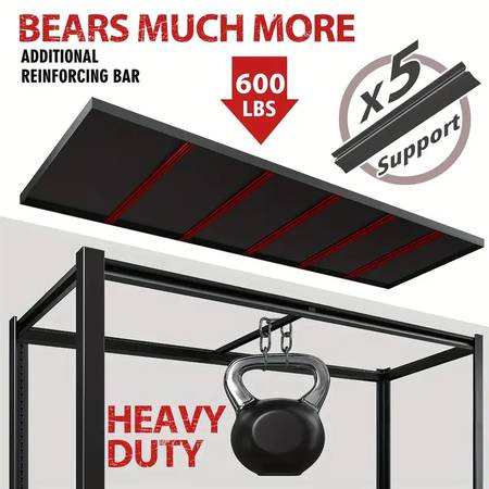 Max weight limit: 3000 lbs with 600 lbs per shelf evenly distributed.