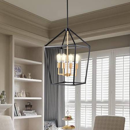 -【Modern Design】 Black industrial chandelier light features a durable steel shade with open lantern-style in black and burnished brass finish, making a addition to your home. A swivel design makes the ceiling pendant compatible with both flat and slop ceiling