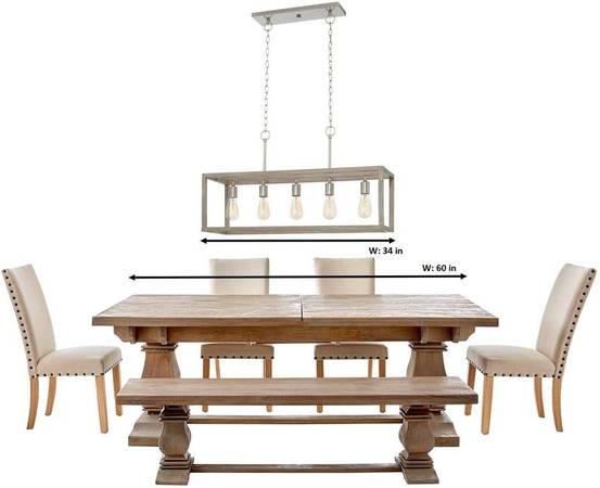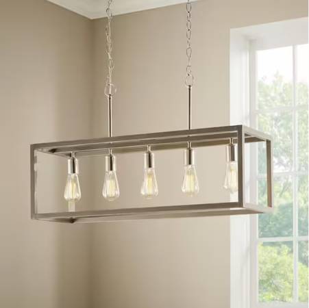 A fun and fresh 5-light island chandelier inspired by nautical accents. The open frame is popular in a variety of today's home designs and is finished in a Brushed Nickel finish. This chandelier is a perfect selection for installations over kitchen islands and dining room tables.