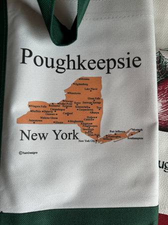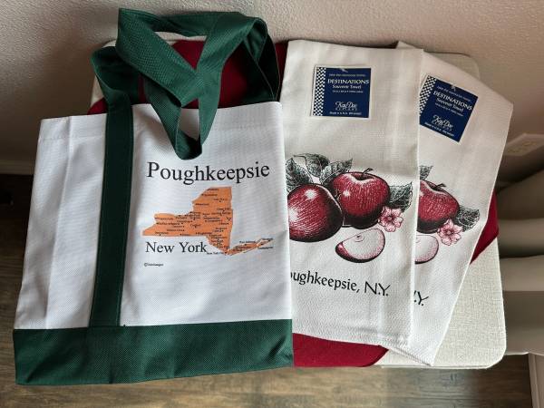 New with tags, Poughkeepsie NY, green and white tote and 2 apple tea towels, 18"x28", 100% cotton. Smoke and pet free home.