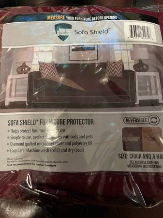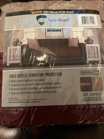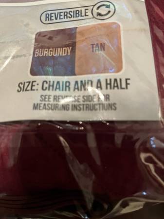 Never even opened. Chair and loveseat slipcovers. They are reversible with tan on one side and the other is Burgundy. Still selling for $48 plus tax each. Selling our’s for only $20 each.