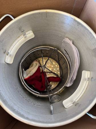 Loco Turkey Fryer set up. You just need the peanut oil, propane, and a turkey. We’ve enjoyed it, but we’re no longer in charge of the turkey for the holidays, and we need the space in the garage.
