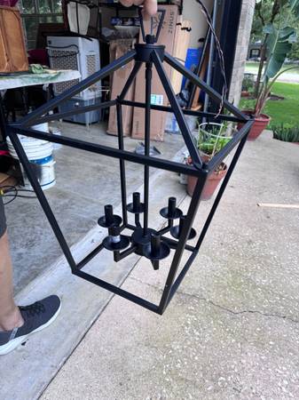 What an entryway statement! New in box - removed and assembled for pictures. See description here: https://www.wayfair.com/lighting/pdp/everly-quinn-gurjit-6-light-lantern-geometric-chandelier-w009503545.html?piid=1481480303