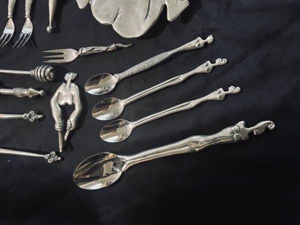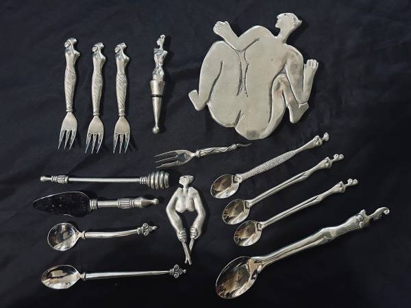 For sale is a collection of kitchen utensils by world famous South African Artist Carrol Boyes. You may have seen her line sold at Bloomingdale’s and Neiman Marcus. This is a big lot and all by Boyes. The trivet itself sells for over $200 and most of the pieces averages $50+ sold on eBay to give you a overall idea of the used market value on this stuff but feel free to look into it if not familiar with this line.