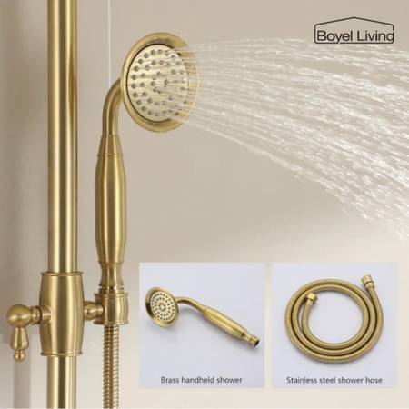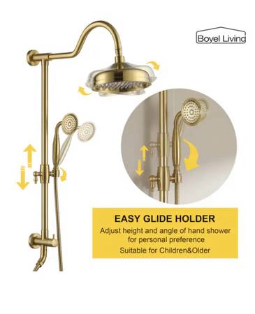 Clihome Brushed Gold Dual Head Shower Faucet Bar System with 2-way Diverter ( Pressure-balanced), Brand New in Box Model #MS-BL-H1107-BG Retail price $268