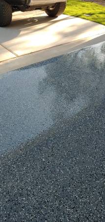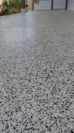 Installed epoxy floor coating- choice of color, texture, decorative chip color, and high gloss or matte finish. We do all kinds of indoor/outdoor concrete surfaces - garage, workshops, patio, large showrooms, small garages, big warehouses - any size! We are punctual, professional, courteous and extremely meticulous - our goal is to make sure you are happy with the results. And we offer custom colors (UT orange, A&M maroon, Dallas Cowboy blue......you name it!)