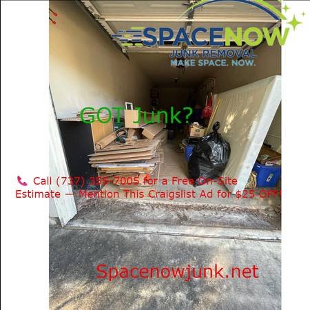 π Same-Day & Next-Day Junk RemovalText or Call π± π SPACE NOW JUNK REMOVAL β FAST, AFFORDABLE, RELIABLE! πServing Austin β’ Round Rock β’ Pflugerville β’ Hutto β’ Georgetown & more! π§Ή We Haul It...
