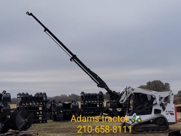 WE HAVE A TON OF OTHER ATTACHMENTS IN STOCK READY TO ROLL, LIKE BACKHOE ATTACHMENT, PALLET FORKS, GRAPPLES OF ALL SHAPES AND ; SIZES, MOWERS, BRUSH CUTTERS, HAY SPEARS, SKID STEER BUCKETS, QUICK HITCH TRAILER MOVER ATTACHMENT, TREE PULLER, TREE SHEARS, JUST TO NAME A FEW