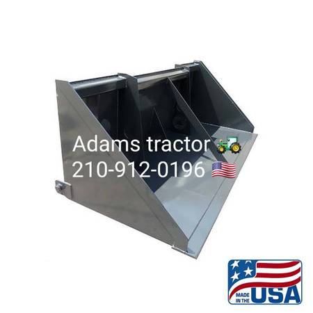 Skid Steer Loader Tar and Chip Spreader Bucket. This bucket is sure to save you time and money!100% American MadeCylinder, hoses and flat face couplers are includedHydraulically operated door to control flow3/8″ side wear bars