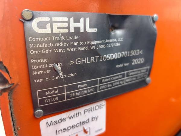 Enter this link to see more images plus all other inventory we have available: https://lyv.cc/U549T2020 Gehl RT105 Compact Track Skid Steer Loader 34Hp Yanmar Engine T Handle