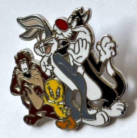 Official 1998 Taz Bugs Tweety Pie Sylvester Warner Bros Looney Tunes character enamel lapel pin badge brooch In excellent condition with few signs of wear. This pin has a metal butterfly clutch...