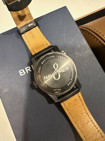 Bi-directional rotating stainless steel bezel. Black dial with luminous silver-tone hands and Arabic numeral hour markers. Minute markers around the outer rim. Dial Type: Analog. Luminescent hands and markers. Date display at the 6 o'clock position. Breitling calibre 17 automatic movement, containing 25 Jewels,