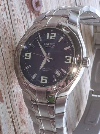 The Casio Ediface EF-106 is a stylish men's wristwatch with a quartz movement and water resistance up to 100m. Featuring a silver stainless steel case and bracelet, the watch has a blue dial with Arabic numerals for easy timekeeping. With a casual style and day/date features, this watch is perfect for everyday wear. The Casio Ediface EF-106 is a reliable timepiece that combines functionality with a sleek design.