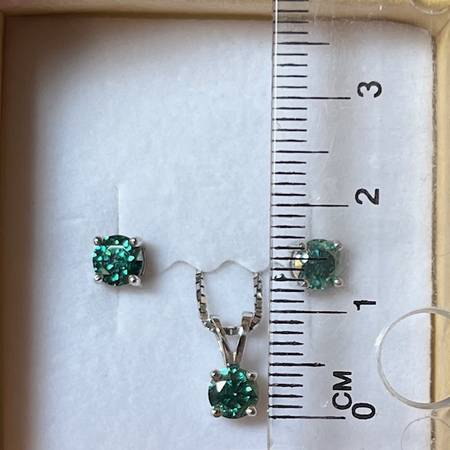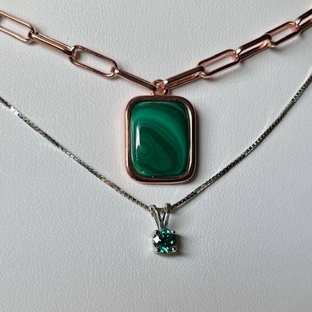 Green Moissanite Platineve Necklace and Earring Set 1.50ctw -Malachite Copper Paperclip Necklace