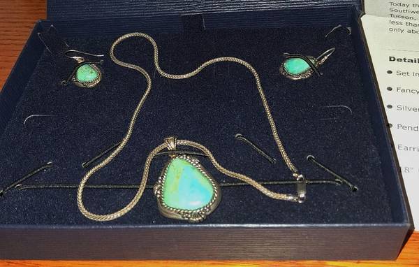 Sedona Turquoise and Sterling Silver Pendant, Chain and Earrings