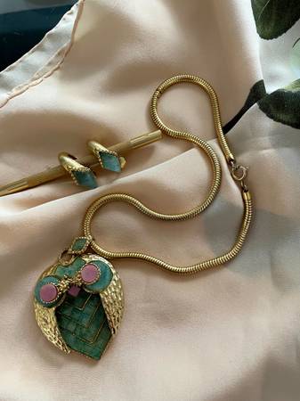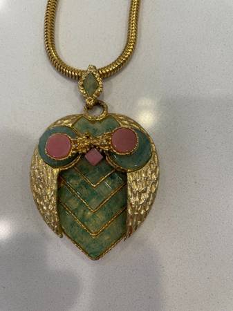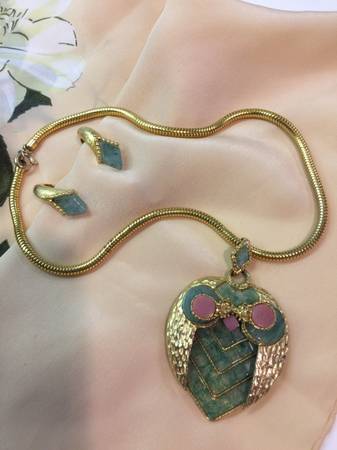 The chain measures 16" and the owl is about 2" across. I bought it new in the 1970s at a jewelry store in the Galleria/Houston. Swoboda is very collectible today, and It's rare to see a three piece set like this one.