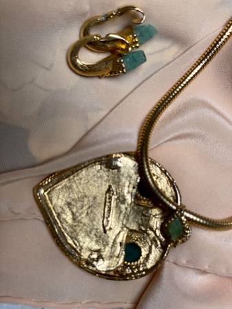 This three-piece set of SWOBODA was created during the early 1960s -early 1980s in California. The company used semi-precious stones, like Jade and other stones, set into Gold-polished metals. The designs were often Asian influenced.