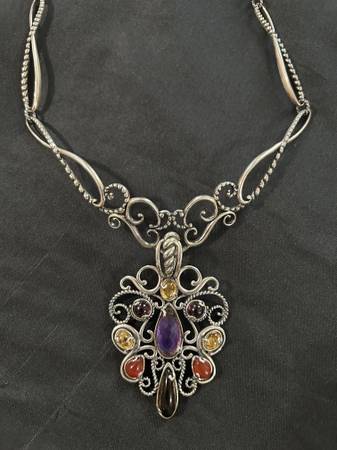 The necklace part itself is gorgeous on its own with its stunning scroll work and textures. It can be worn by itself or with the pendant. It also has a removable and adjustable matching sterling extender to make the necklace from choker style to mid length.